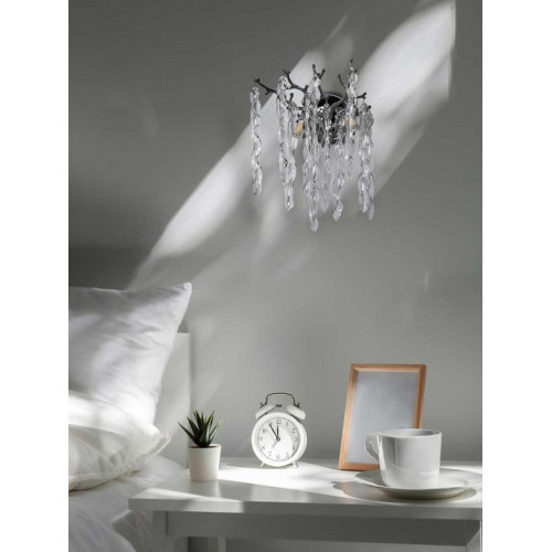 | Дополнительные параметры | светильник предназначен для использования со скрытой проводкой Основание настенного бра выполнено по технологии художественного литья из сплава алюминия с цинком и гальванизировано в цвет хрома. Настенное бра декорировано подвесами из прозрачного стекла оригинальной формы. |