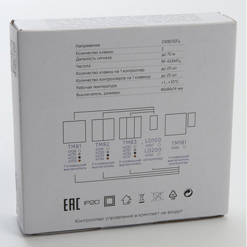 | Дополнительные параметры | Дистанционный выключатель для светильников. Количество режимов работы 2 |