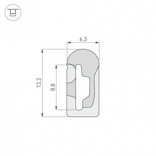 | Дополнительные параметры | Светопропускание: 19 % Для фиксации необходимо не менее пяти держателей на 1 м профиля. Горизонтальный изгиб SIDE, минимальный радиус изгиба 30 мм. Цельнолитой силиконовый гибкий профиль, белый матовый. Гнется в плоскости. Для установки во влажных помещениях необходима герметизация при помощи двухкомпонентного эпоксидного герметика. Класс пылевлагозащиты – IP65 (при соблюдении технологии герметизации). Для лент шириной от 5 до 8 мм, высотой до 2,7 мм и мощностью до 10 Вт/м. |