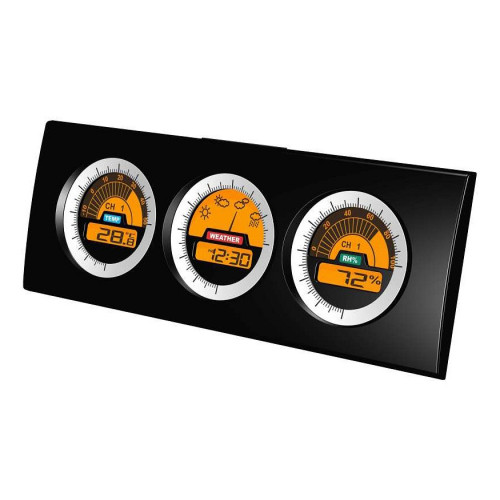 | Дополнительные параметры | Предсказание погоды: солечно, переменная облачность, облачно, дождь/снег 3-канальный беспроводной радиодатчик с сенсором (длина провода сенсора 1,5м, удаленность 30м) измерение внешней и комнатной температуры (С°) измерение внешней и комнатной влажности (%) |