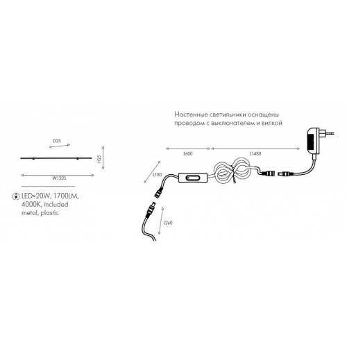 | Наличие выключателя, диммера или пульта ДУ | выключатель на проводе |