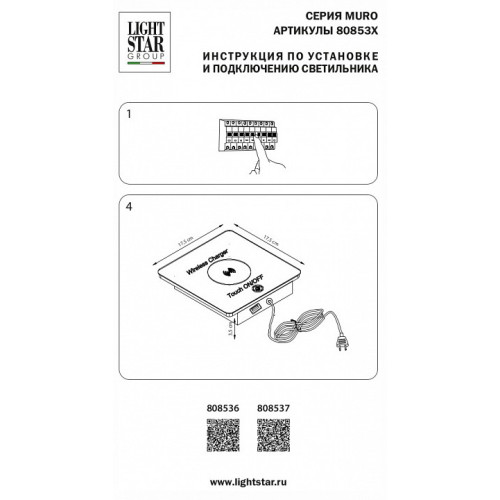 | Компоненты, входящие в комплект | USB порт, беспроводное зарядное устройство для смартфонов, провод электропитания с вилкой без заземления |