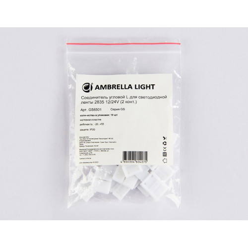 | Дополнительные параметры | Соединитель угловой L для светодиодной ленты 2835 12/24V (2 конт.) GS6501 (10шт) |
