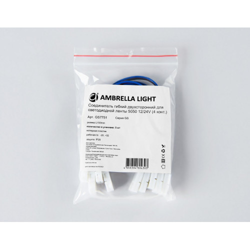 | Дополнительные параметры | Соединитель гибкий двухсторонний для светодиодной ленты 5050 12/24V (4 конт.) 150 мм GS7751 (5шт) |