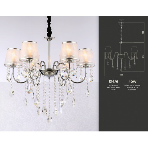 | Цвет плафонов и подвесок | неокрашенный, серебро |