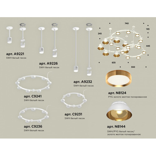 | Цвет плафонов и подвесок | белый песок, золото, неокрашенный |