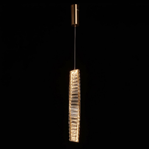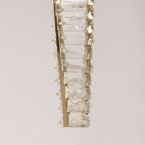| Дополнительные параметры | Металлическое основание подвесной люстры гальванизировано в цвет латуни. Люстра декорирована прозрачным хрусталем. |