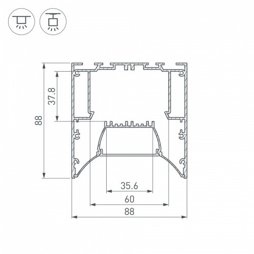 | Дополнительные параметры | Алюминиевый анодированный профиль для светодиодных лент и линеек. Состоит из профиля и основания для ленты. Для их соединения необходим Фиксатор основания арт. 036431 (приобретается отдельно, 4 шт. на 2 м. профиля). Ширина площадки для ленты 35,6 мм. Отсек для БП 48х38 мм. Экраны, заглушки и другие аксессуары приобретаются отдельно. Отсек для БП, ширина: 48 мм Отсек для БП, высота: 38 мм Рассеиваемая тепловая мощность на 1м: max: 57.49 Вт Способ монтажа: Накладной / Подвесной Ширина площадки: 35.6 мм Ширина световой линии: 46 мм |