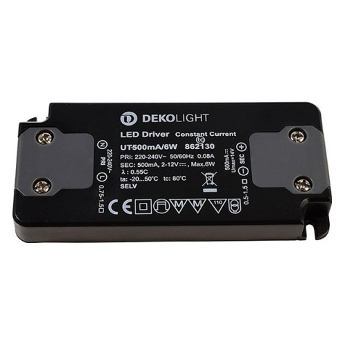 | Дополнительные параметры | Deco Light power supply, FLAT, Power Supply 500mA 6W Input voltage: 220-240V AC / 50-60Hz, output voltage: 2-12V DC output current: 500 mA, 6.00 W |