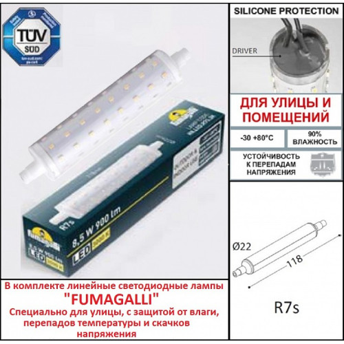 | Дополнительные параметры | Светильники для подсветки лестниц встраиваемые, пр-ва FUMAGALLI серии NINA, модель NINA 190 - изготовлены в Италии. Устанавливаются в вертикальные поверхности: подпорные стенки, колонны, ступени лестниц, ниши, откосы и др., для подсветки пространства непосредственно перед ними. Светильники имеют прочный пыле-влагонепроницаемый корпус с степенью защиты IP 55, что позволяет их устанавливать в местах с возможной физической нагрузкой (например лестничные ступени). Маленький размер корпуса обеспечивает широкие возможности в применении подсветок серии NINA 190. Большой световой поток и минималистичный, вытянутый корпус, практически полное отсутствие ограничений по установке позволяет инсталировать встраиваемую подсветку в любой дизайнерский проект. В светильнике используется светодиодная линейная лампа FUMAGALLI прожекторного типа, с цоколем R7s, длиной 118 мм. Лампа имеет высшую категорию надежности, немецкий диплом-сертификат TYV, сертифицированна РосТестом. Маркировка OUTDOOR на лампе обозначает, что она предназначена для использования как в помещениях, так и на улице, в условиях больших перепадов температур, скачков напряжения и повышенной влажности. Корпус не проводит электричество, изготовлен из современного вандалостойкого не горючего полимера RESIN. Прочного, окрашенного в массе, не ржавеющего и не выгорающего на солнце, не проводящего электричество. Рассеиватель выполнен из антивандального, не мутнеющего и не горючего PMMA. Срок службы светильника - не менее 20 лет. Не требуется трансформатор. Напряжение питания - 220 В. Температура эксплуатации от -60 до +90. При заказе требуется выбрать цвет корпуса. |