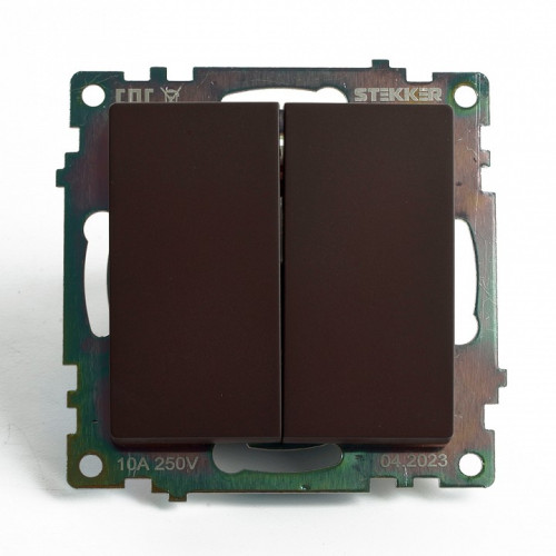 Выключатель двухклавишный без рамки Stekker Катрин 49170