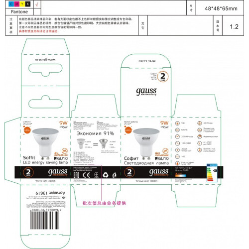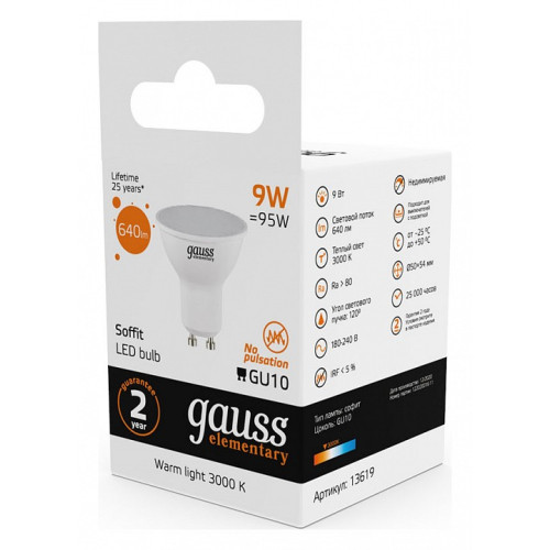 Лампа светодиодная Gauss Софит GU10 9Вт 3000K 13619