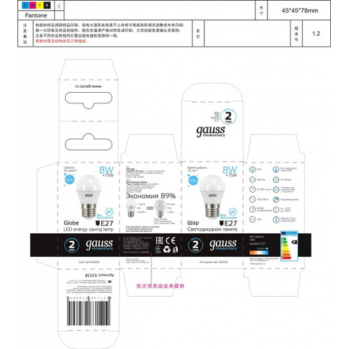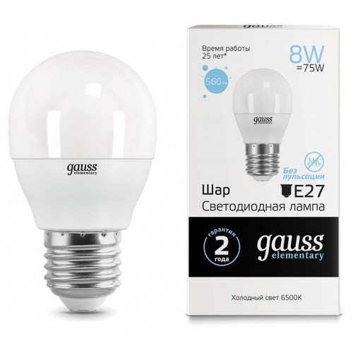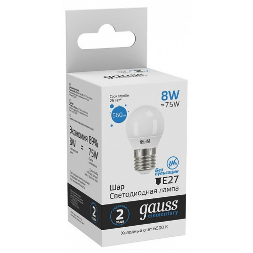 Лампа светодиодная Gauss 532 E27 8Вт 6500K 53238