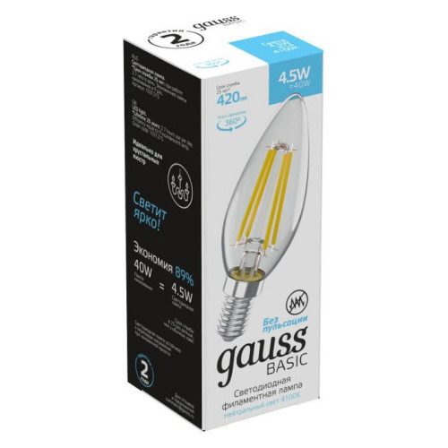 Лампа светодиодная Gauss Basic Filament E14 4.5Вт 4100K 1031215