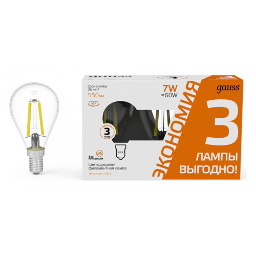 Набор ламп светодиодных Gauss Filament E14 7Вт 2700K 105901107T