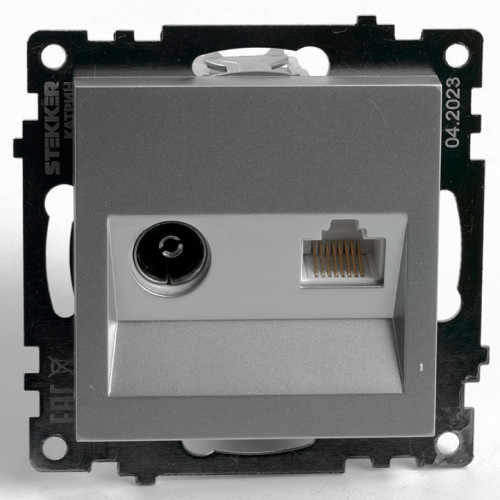 ТВ-розетка и розетка Ethernet RJ-45 без рамки Stekker GLS00-7106-03 49183