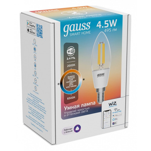Лампа светодиодная с управлением через Wi-Fi Gauss Smart Home E14 4.5Вт 2000-6500K 1250112