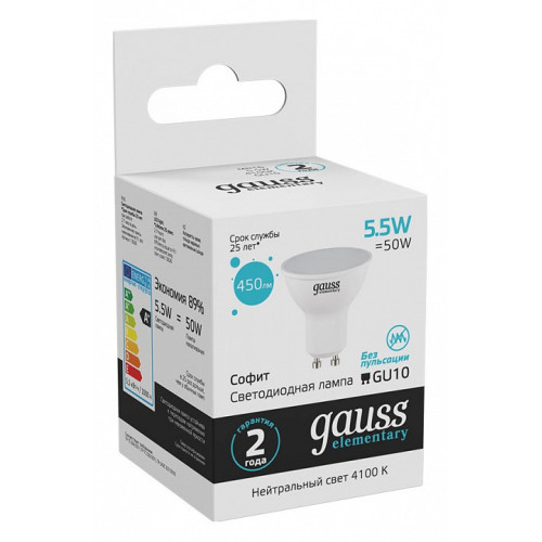 Лампа светодиодная Gauss Софит GU10 5.5Вт 4100K 13626