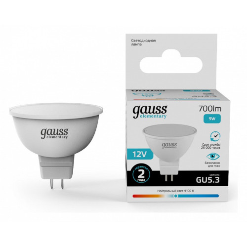• Лампа светодиодная Gauss Elementary GU5.3 9Вт 4100K 11529