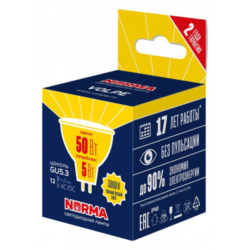 | Тип цоколя лампы основной | GU5.3 |