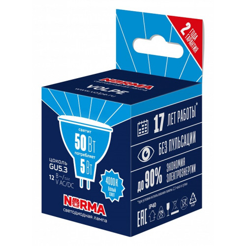 | Тип цоколя лампы основной | GU5.3 |