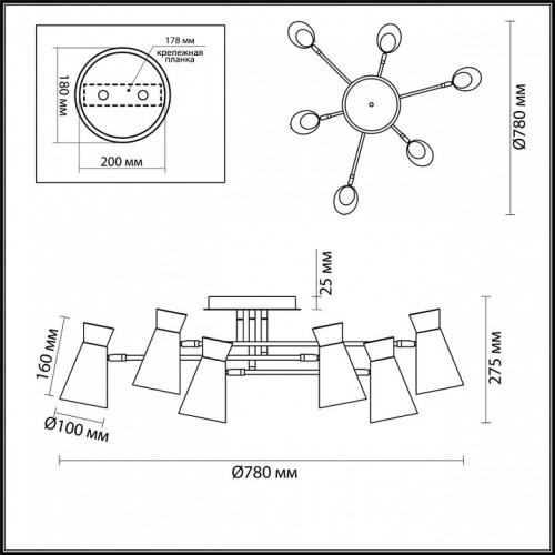 | Форма плафонов | конус круглый усеченный |