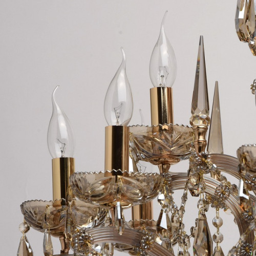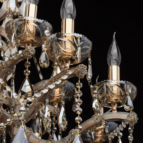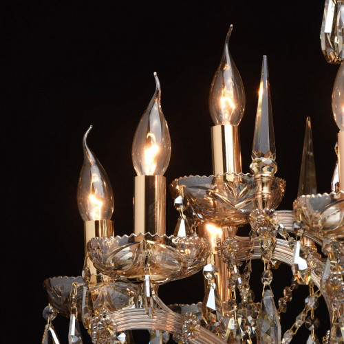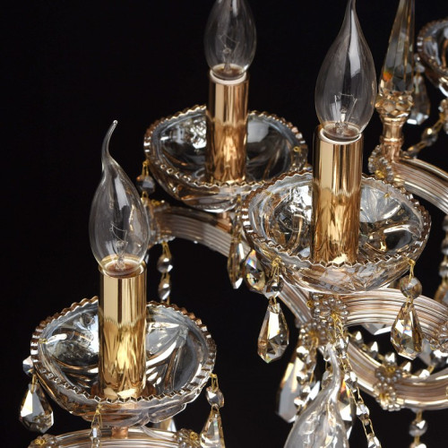 | Дополнительные параметры | регулируется по высоте Классический парадный стиль, продуманные детали, благородные тона – все это в светильниках из коллекции «Одетта». Металлическое основание яркого золотого оттенка эффектно подчеркнуто источниками света в виде свеч и изящными рожками. На фоне драгоценных тонов прекрасно смотрятся хрустальные подвески цвета золотистого топаза. Стеклянный декор завершает композицию и придает ей дополнительное изящество. |