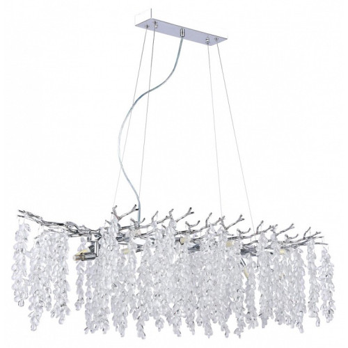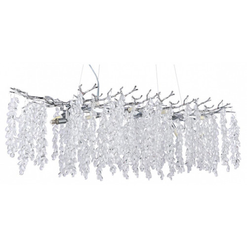 Дополнительные параметры Основание подвесной люстры выполнено по технологии художественного литья из сплава алюминия с цинком и гальванизировано в цвет хрома. Люстра декорирована гроздьями из матового и прозрачного стекла.