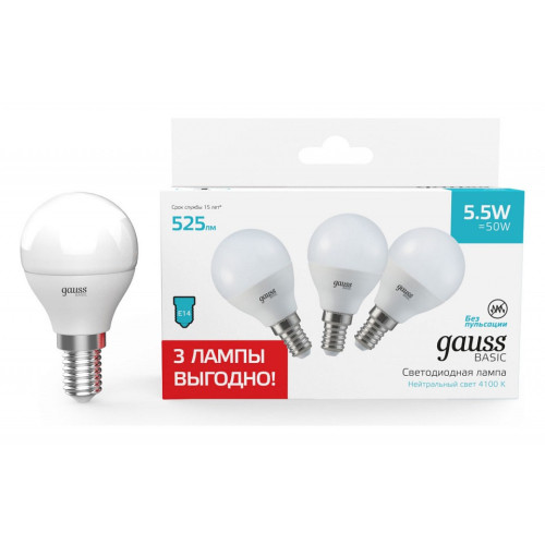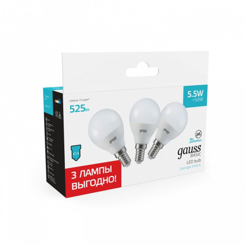 Набор ламп светодиодных Gauss Basic E14 5.5Вт 4100K 10531252T
