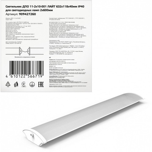 | Дополнительные параметры | Светильники для освещения объектов с низкими требованиями к пылевлагозащите до IP40 |