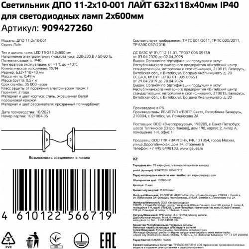 Накладной светильник Gauss ДПО 11-2*10-001 ЛАЙТ 909427260