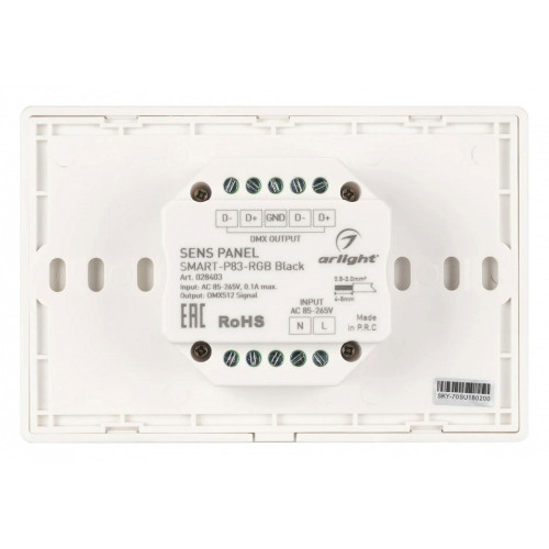 | Дополнительное описание | Встраиваемая сенсорная панель 2.4 ГГц, цвет чёрный. Итальянский стандарт. Материал - стекло. Для управления RGB источниками света (ШИМ), 4 зоны управления. Функция управления DMX512 устройствами. Питание/рабочее напряжение AC 85-265V. Габариты 120х80х37 мм, устанавливается в стандартный подрозетник. Панель совместима с диммерами серии SMART. |