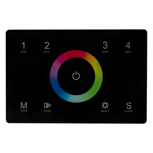 | Дополнительные параметры | Назначение: Протокол DMX Выходной сигнал: DMX Каналы управления: 3 CH (3 канала RGB) Частота передачи данных: 2400 MHz Связь пульт/контроллер: RF (радио) Зоны управления: 4 зоны Хранение программ: встроенные Свойства пульта/панели: Сенсор 100%Хранение программ: встроенные |