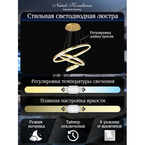 | Дополнительные параметры | Светильник управляется с дистанционным управлением через пульт ДУ, смартфон, планшет. Обладает плавной настройкой яркости в диапазоне от 10% до 100%. Имеется режим ночника и таймер отключения. Регулируется по высоте. |