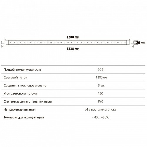 | Световой поток, лм | 1200 |
