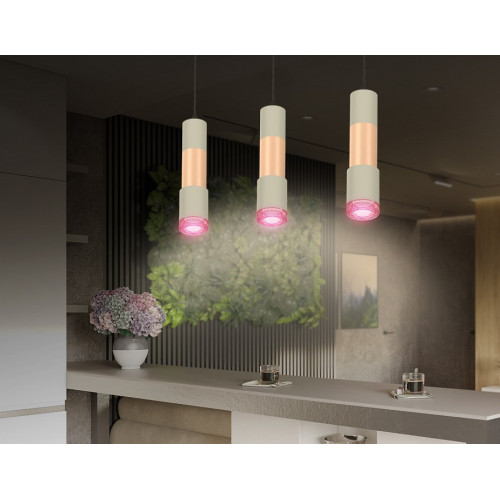 | Цвет плафонов и подвесок | розовый, серый |