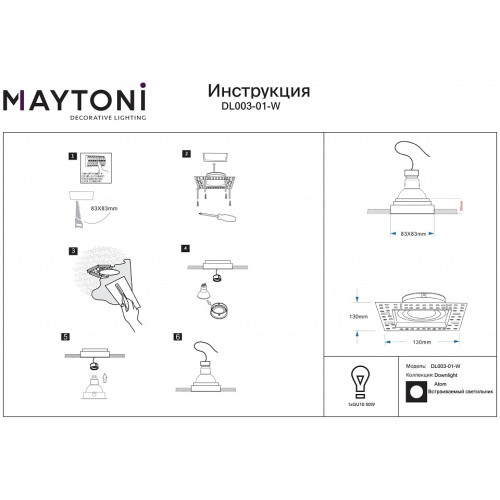 | Тип цоколя лампы | GU10 |