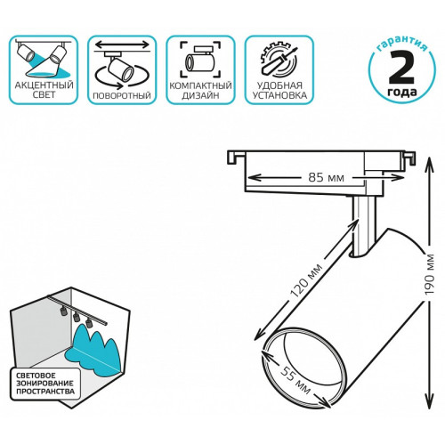 | Дополнительные параметры | поворотный светильник, однофазная система |