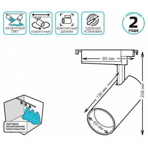 | Дополнительные параметры | поворотный светильник, однофазная система |