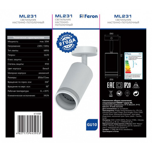 | Дополнительные параметры | поворотный светильник |