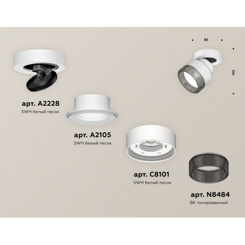| Компоненты, входящие в комплект | крепеж накладной поворотный d60, коннектор d60-d85, корпус накладной d85, насадка передняя d85 |