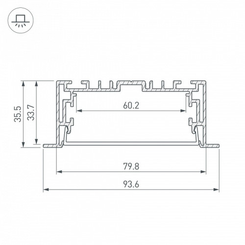 | Дополнительные параметры | Комплект с экраном. Алюминиевый анодированный профиль для светодиодных лент и линеек. В комплекте профиль, PC матовый экран. Ширина площадки для ленты 62,5 мм. Светопропускание экрана 85%. Аксессуары приобретаются отдельно. КПД профиля (cветовой): 92 % Рассеиваемая тепловая мощность на 1м: max: 64.3 Вт Способ монтажа: Встраиваемый с накладным фланцем Ширина площадки: 62.5 мм Ширина световой линии: 94 мм |