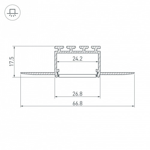 | Дополнительные параметры | встраиваемый профиль в гипсокартон толщиной до 16 мм, под строительную отделку, позволяет создать линию света шириной 24 мм. без видимых частей алюминия, для лент шириной до 24 мм |