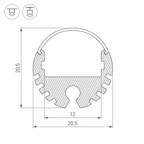 | Дополнительные параметры | КПД профиля: 92 % Рассеиваемая тепловая мощность на 1м: 14.4 Вт Глубина установки источника света: 6 мм Алюминиевый анодированный круглый профиль для светодиодных лент и линеек. Экраны, заглушки и другие аксессуары приобретаются отдельно. |