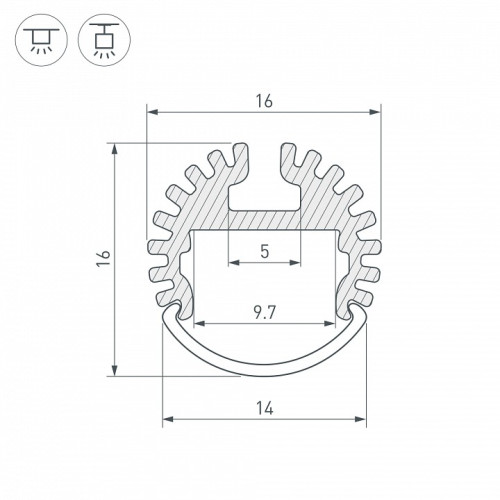 | Дополнительные параметры | КПД профиля: 89 % Рассеиваемая тепловая мощность на 1м: 12 Вт Глубина установки источника света: 6.2 мм Алюминиевый анодированный круглый профиль для светодиодных лент и линеек. Экраны, заглушки и другие аксессуары приобретаются отдельно. |