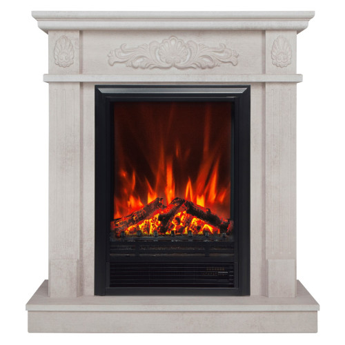 Комплектуется многофункциональным очагом, который способен быстро обогреть комнату до 20 м². Зеркальная стенка за муляжом дров визуально увеличивает глубину и создает впечатление трехмерности пламени. Звук потрескивания поленьев усиливает реалистичность восприятия. Выдув горячего воздуха в режиме обогрева осуществляется из нижней части очага.