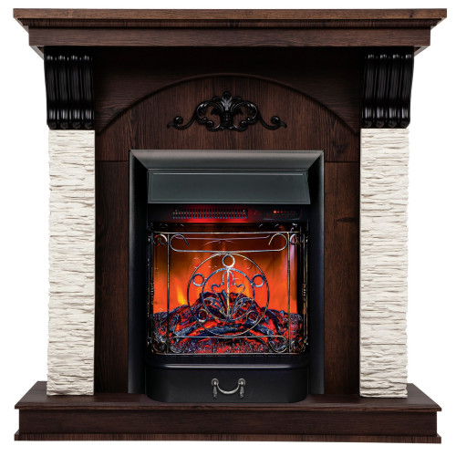 Каменный портал Neapolis изготовлен из из искусственного камня и шпонированного МДФ. Очаг с открытым муляжом выполнен в точной копии тлеющих углей и небольших поленьев. Оригинальности и схожести с натуральным камином добавляет ажурная кованая решетка и звук потрескивания дров.