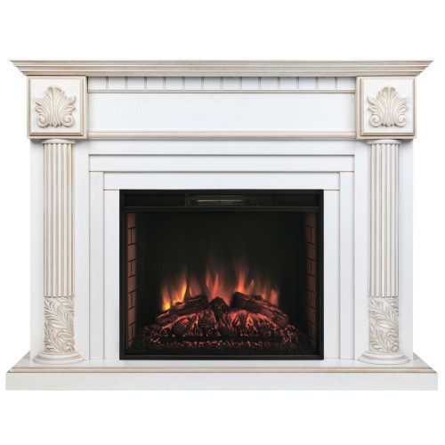 Каминокомплект Imperia изготовлен из высококачественного шпонированного МДФ с выразительной текстурой натурального дерева. Главное украшение этого портала - объемные колонны с резными растительными узорами.Декоративные элементы покрыты золотой патиной, что придает изделию эффект изысканной старины.